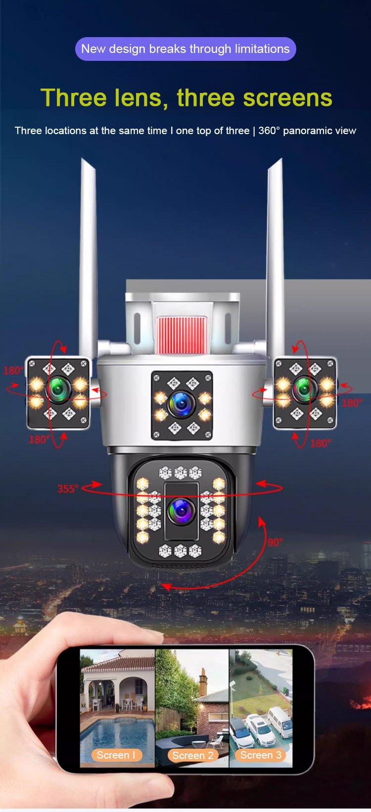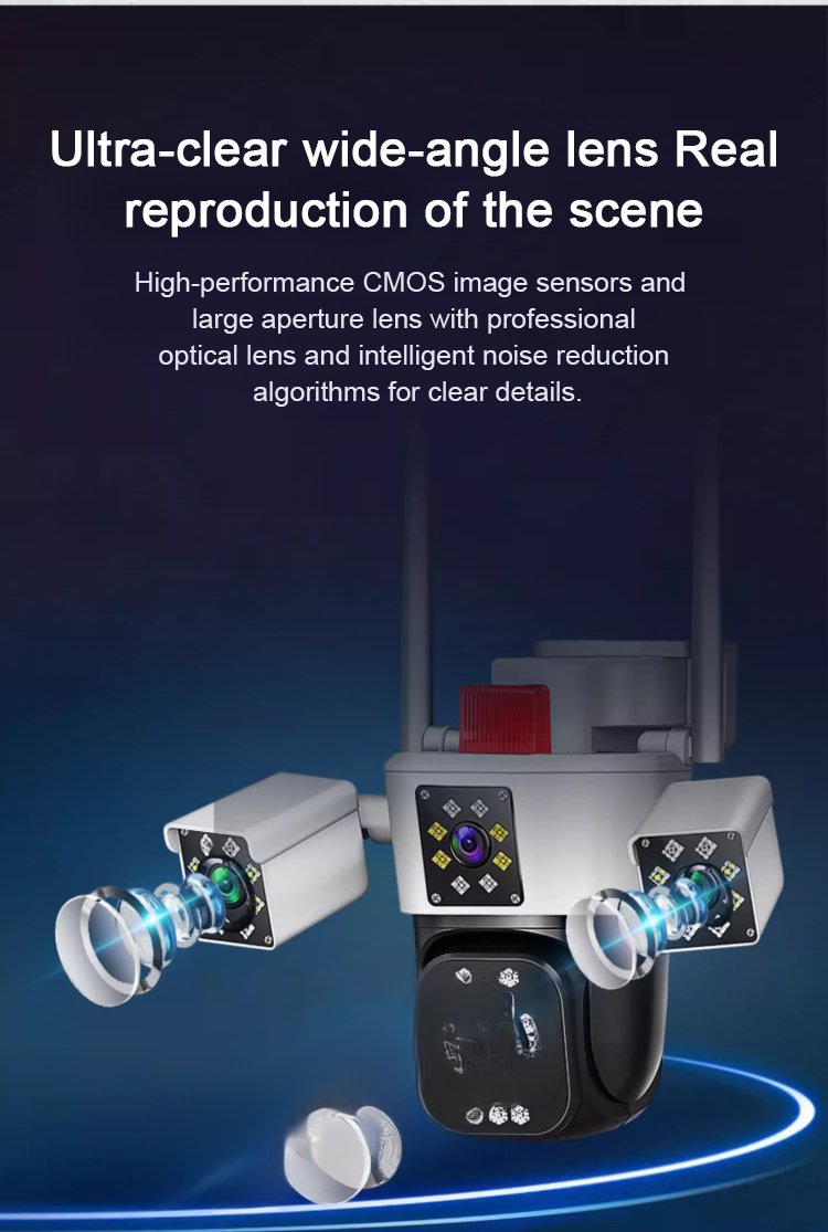 360-degree 10x zoom triple-screen HD night vision camera